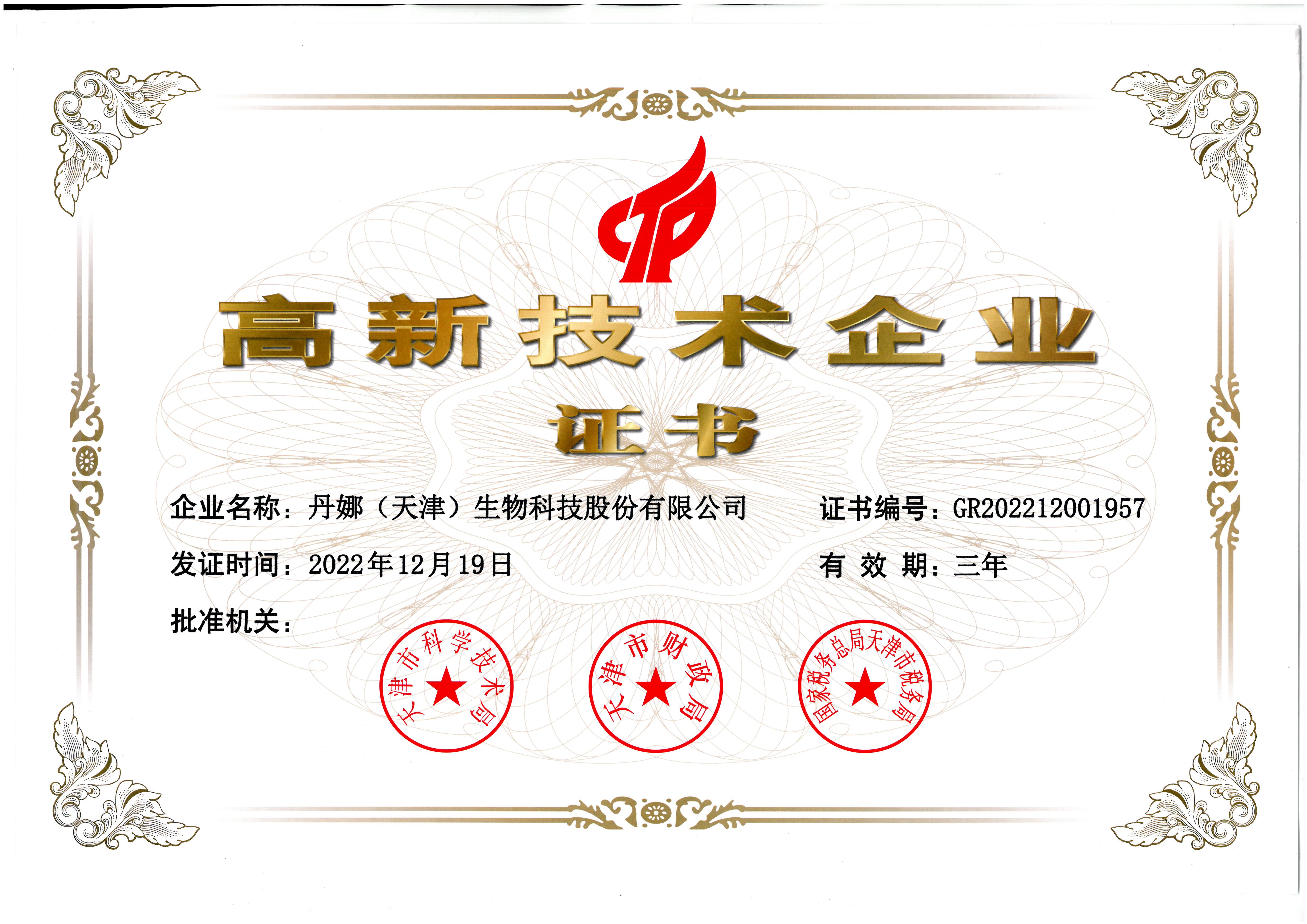 高新技术企业证书
