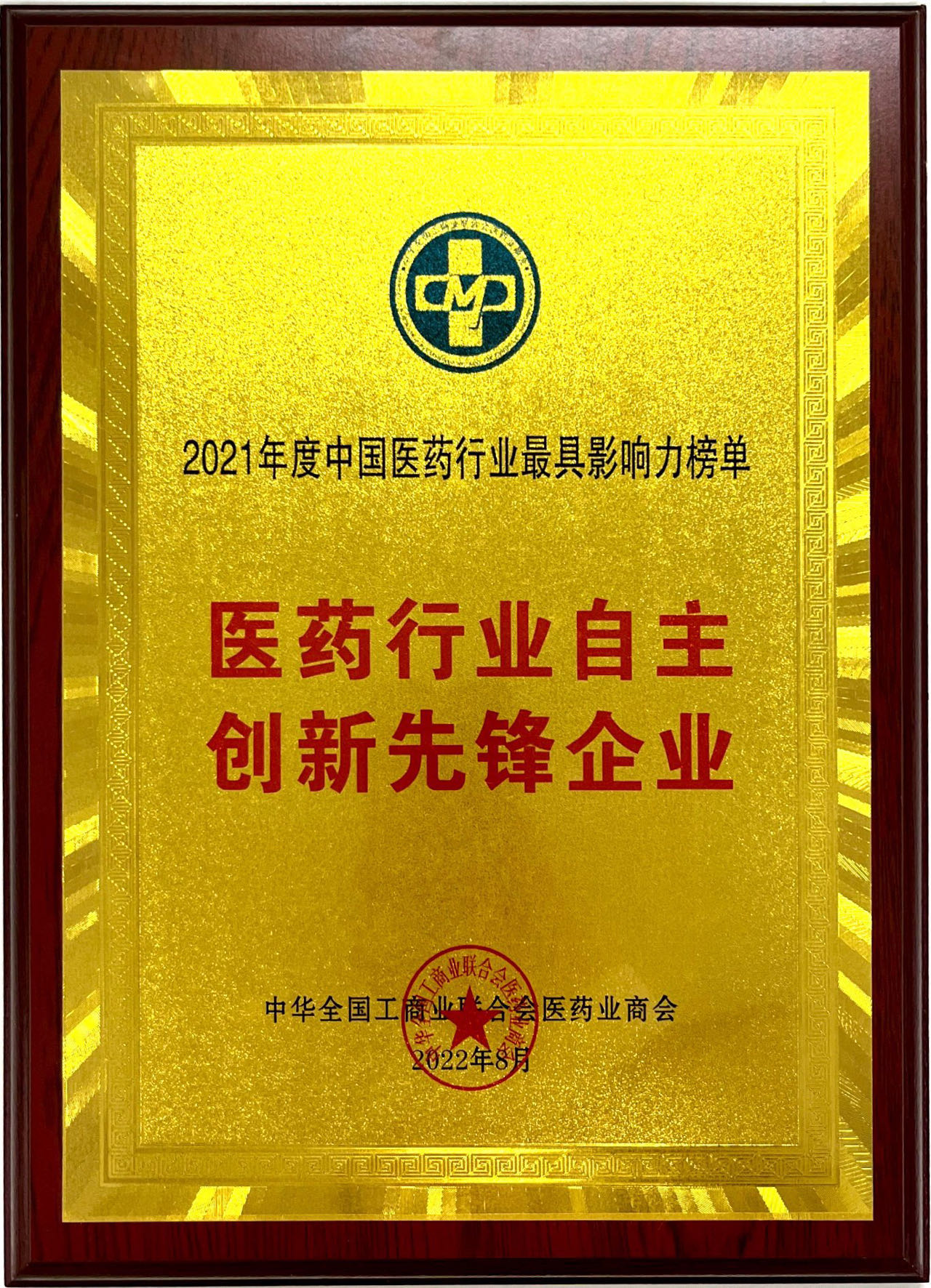 2022年影响力榜单中国医药行业自主创新先锋企业奖牌