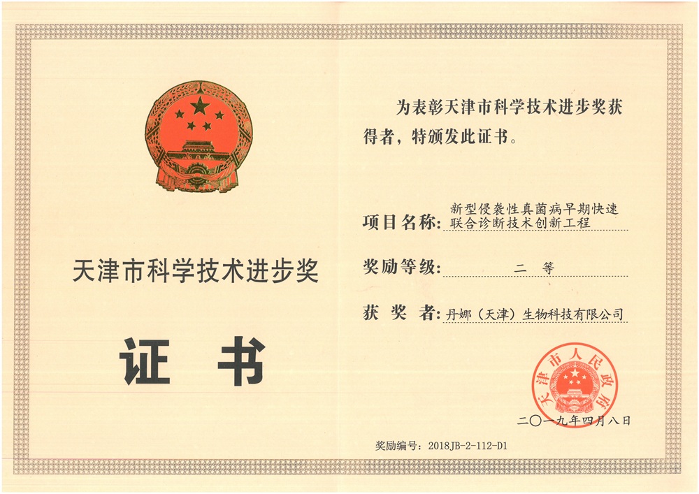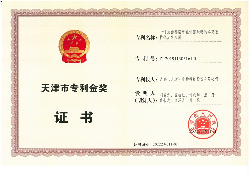 天津市专利金奖证书