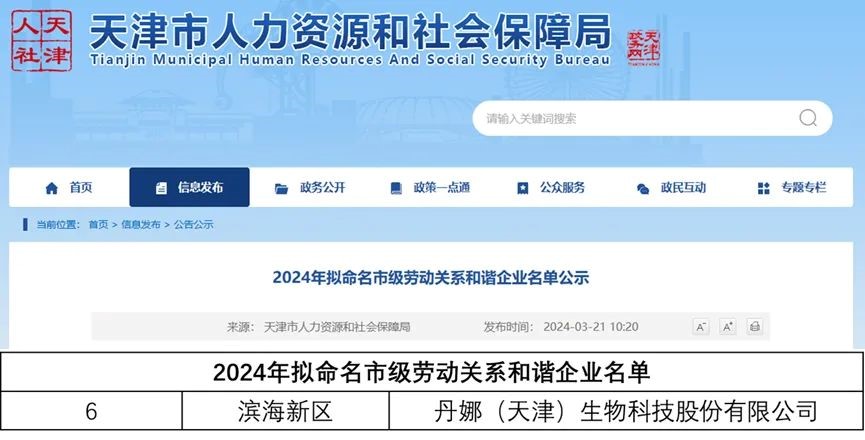 新闻丨丹娜生物获评天津市劳动关系和谐企业